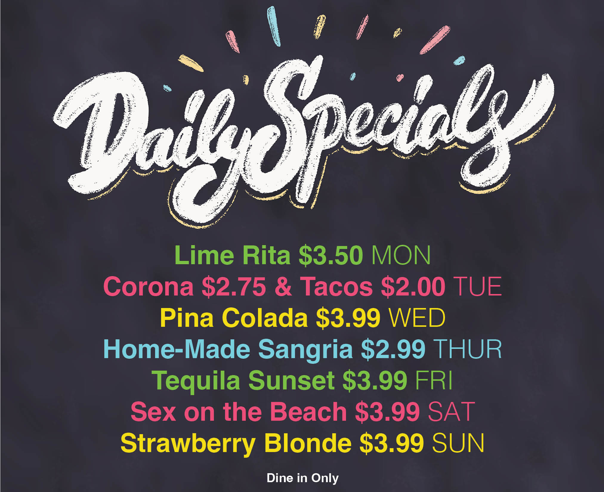 Steak, Seafood, and Chicken dishes. Quesadillas, Fajitas, Burgers & more!